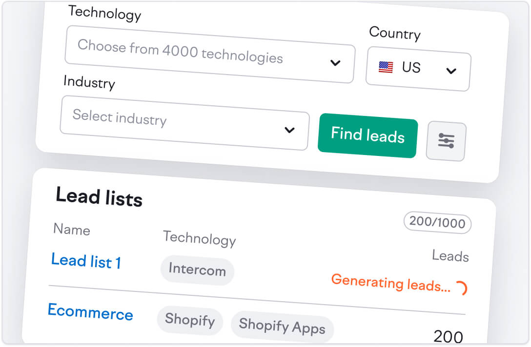 - Look for potential clients based on location and one of the 300 website technologies they use, such as WordPress, Shopify, MailChimp, Wix, Intercom, and more. This way, you can find businesses that fit your agency's niche and are more likely to need your services and become your clients.