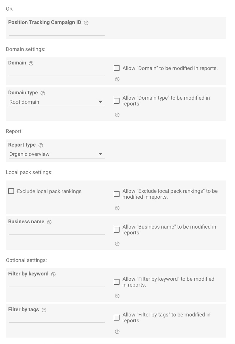 - Organic Search Positions - this will pull information from an Organic Positions report about the domain’s top 100 keyword positions in organic search results.