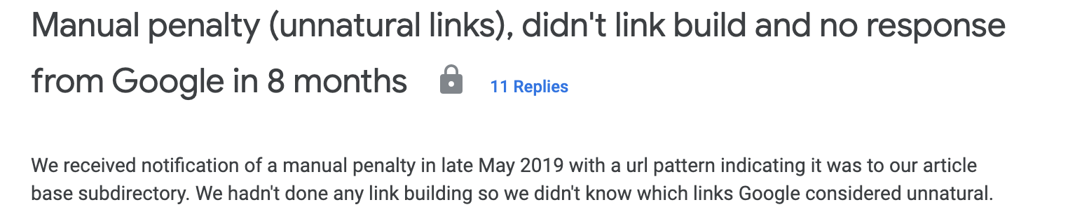 “Probably the most challenging manual action case was for a payday loans company that received a manual action for unnatural links. After several disavows, many link removals and weeks and weeks of waiting for responses from Google to our requests for reconsideration, and then getting rejected, I reached out to Matt Cutts on Twitter as he was the head of webspam at Google at the time. We simply could not find any more manipulative links to remove, and yet Google was refusing to remove the manual action.
