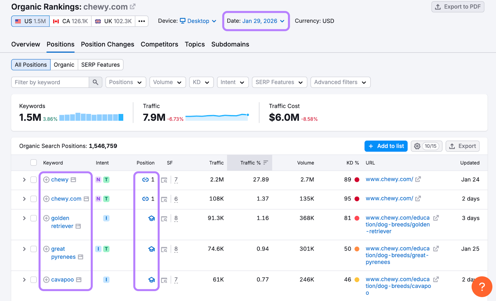 One of the quickest ways to find out is with Semrush’s Organic Rankings tool.