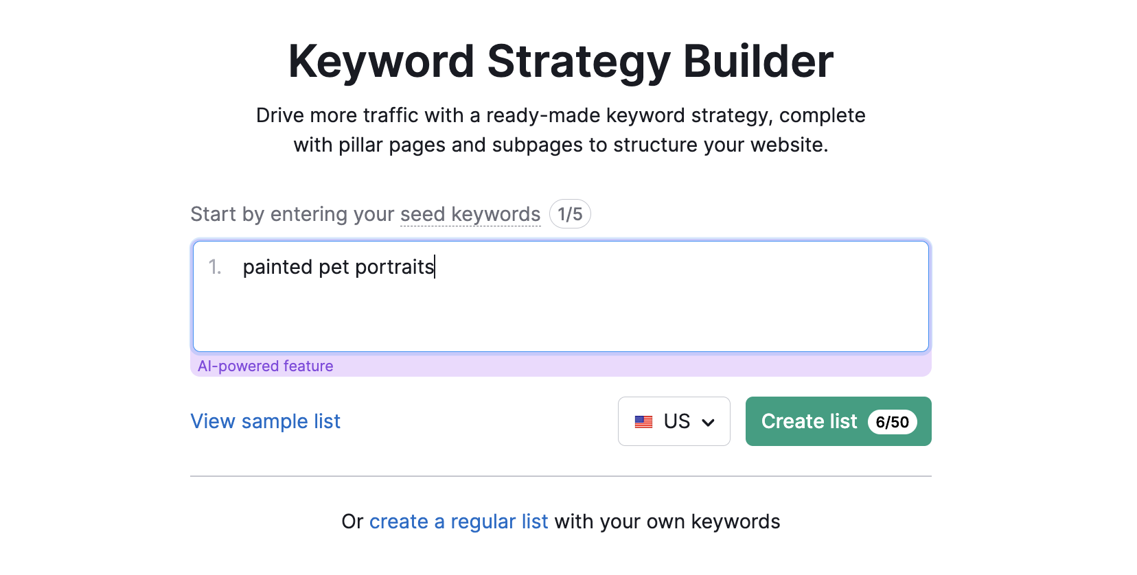 If you aren’t sure which keywords to use for topic clusters, try Semrush’s Keyword Strategy Builder.